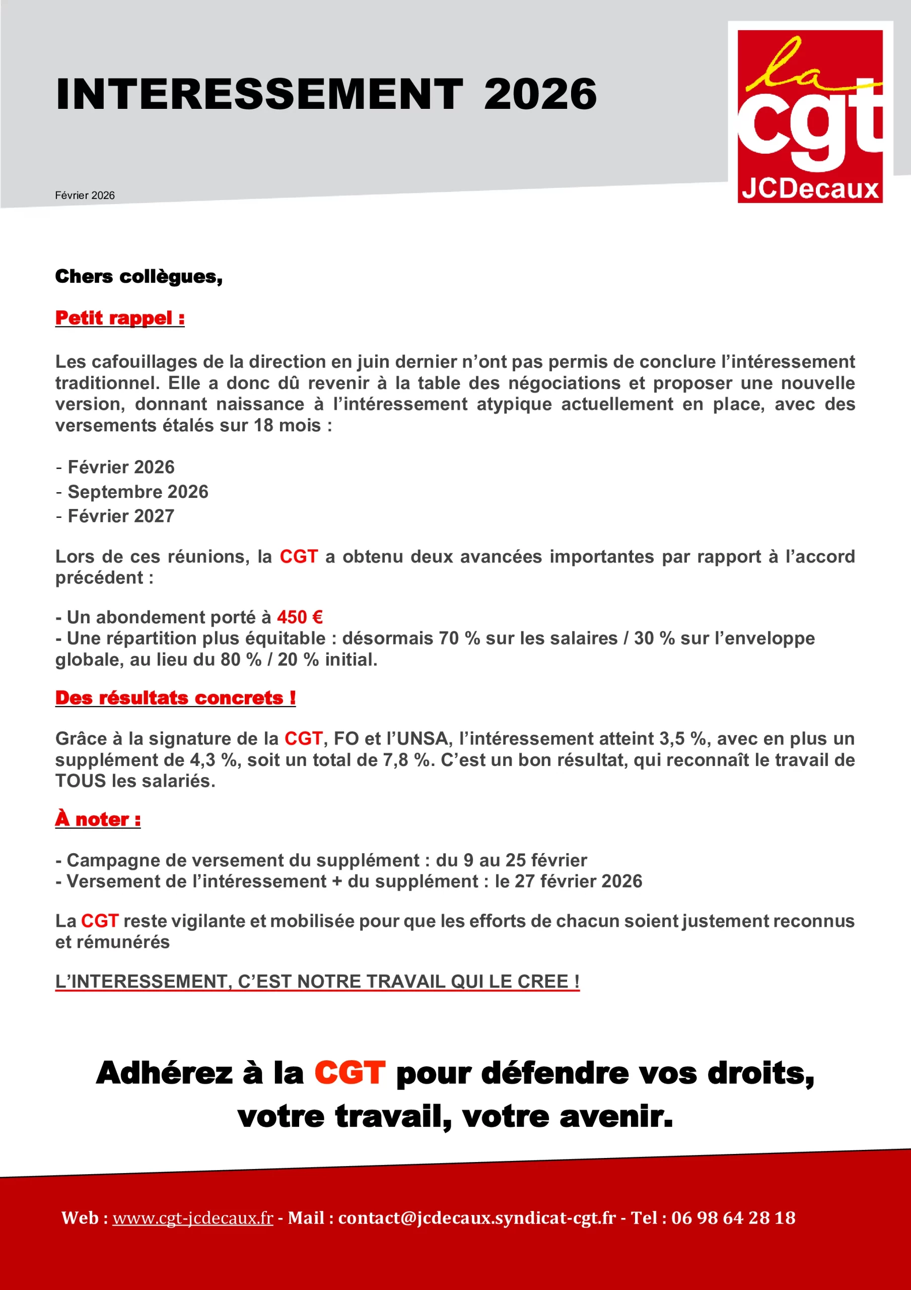 • Intéressement 2026